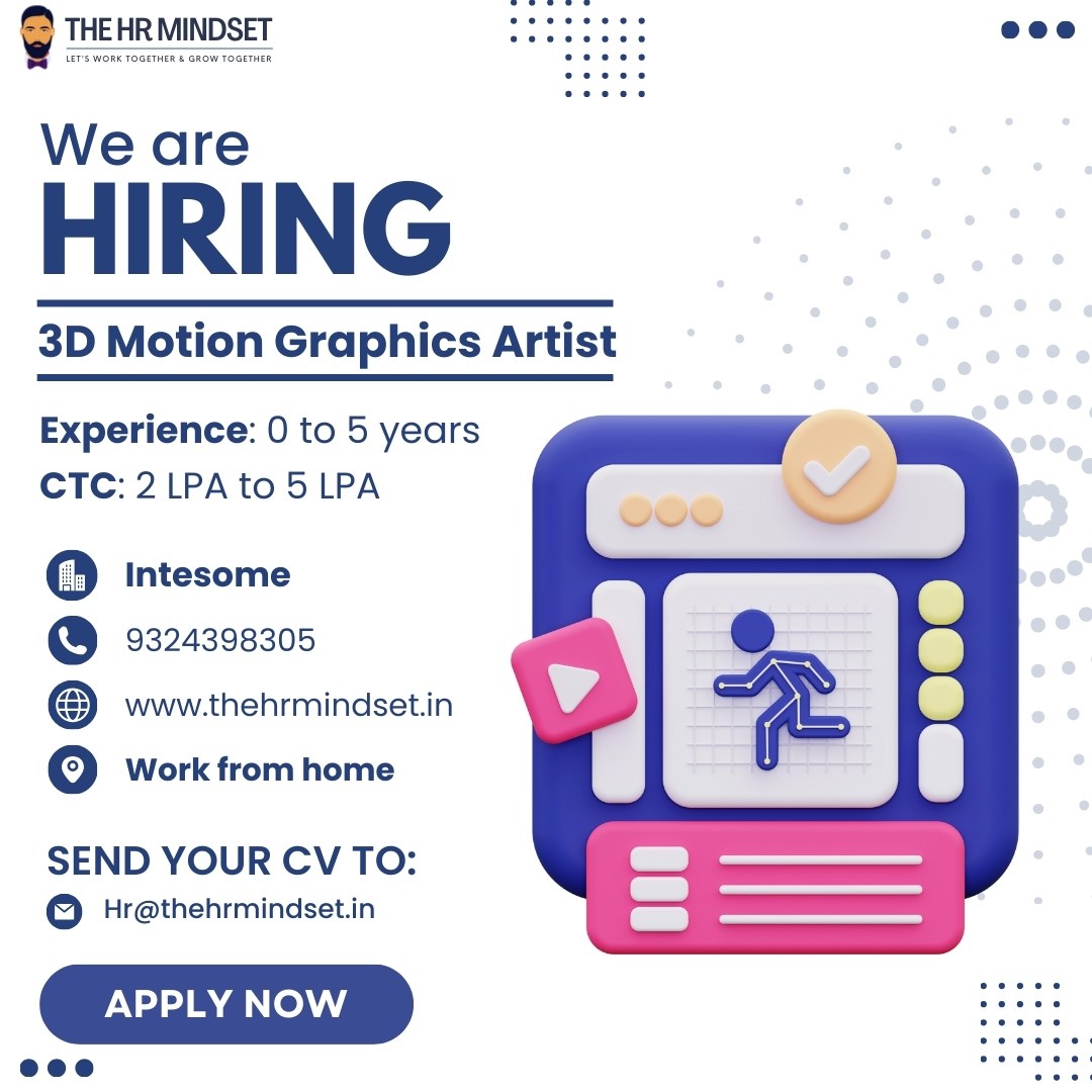 We are hiring 3D Motion Graphics & Artist